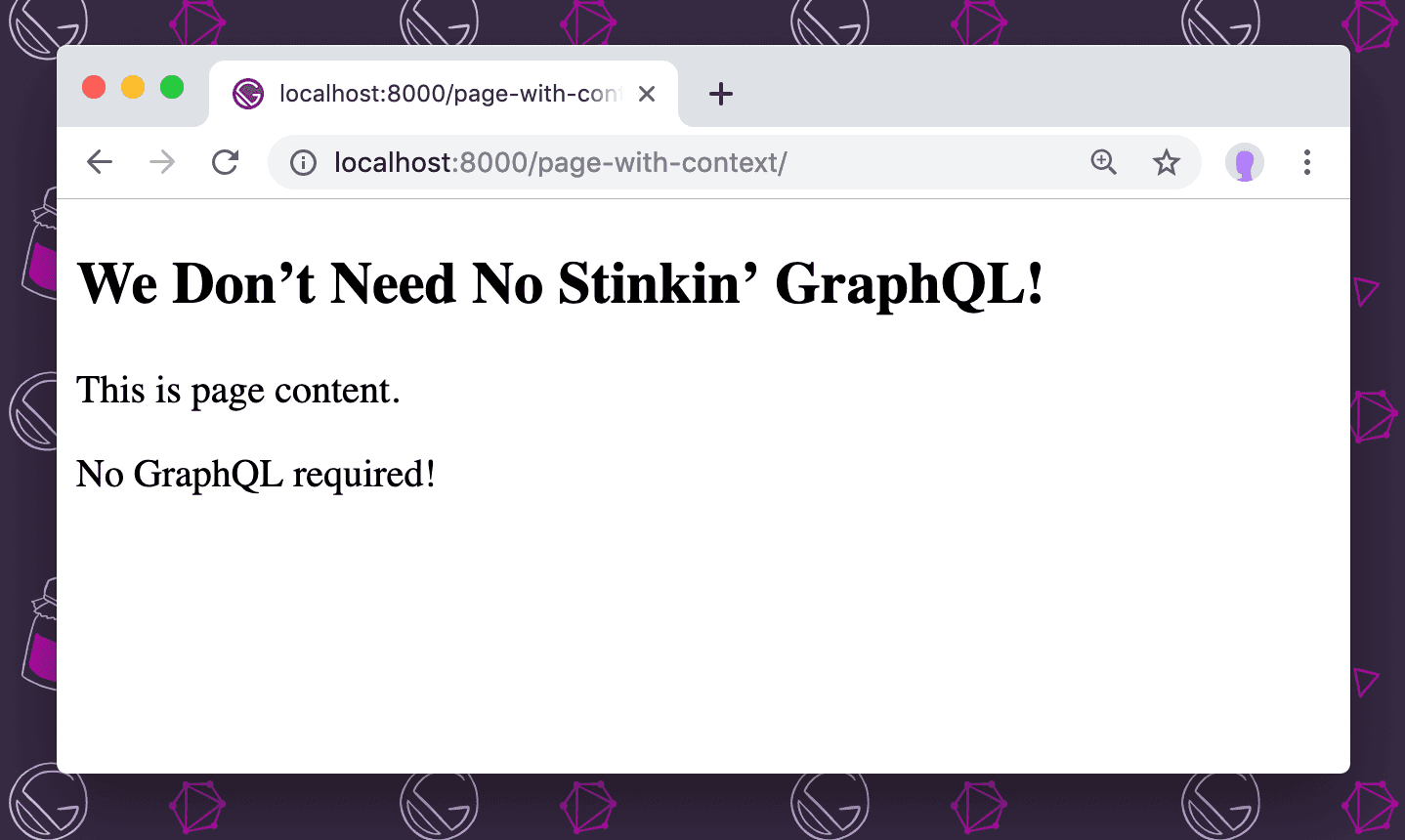 Start the development server with gatsby develop and visit http://localhost:8000/page-with-context/ to see the created page: